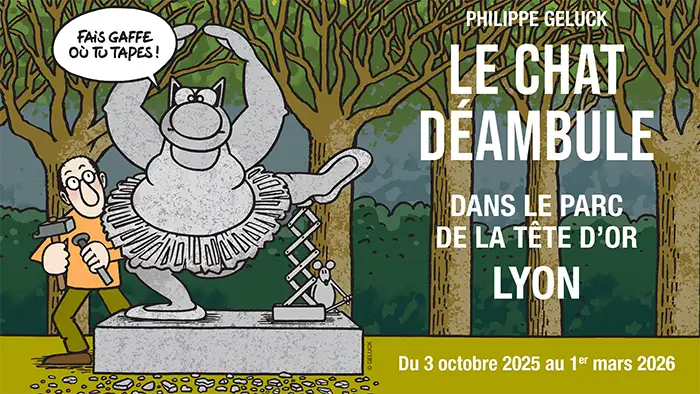 Le célèbre Chat de l'artiste belge Philippe Geluck élit domicile au parc de la Tête d'or.